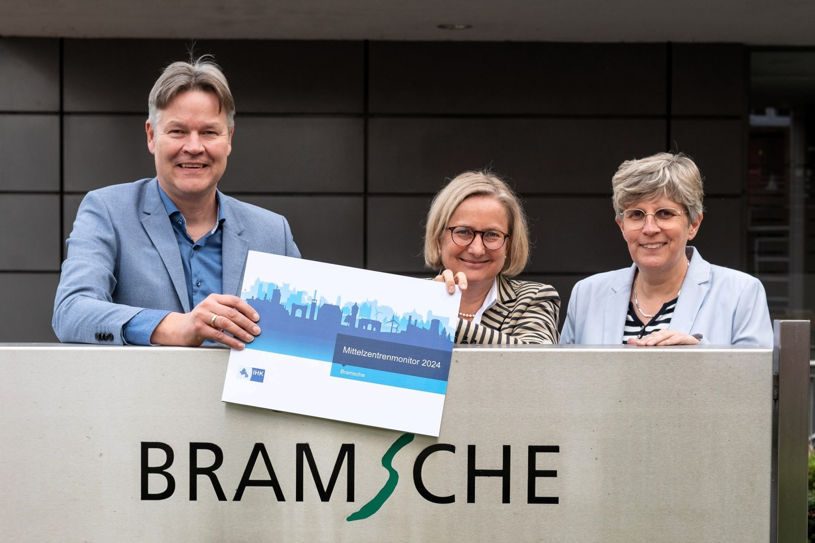 Bei der Vorstellung der Ergebnisse des Mittelzentrenmonitors für Bramsche hatte IHK-Geschäftsbereichsleiterin Standortentwicklung Anke Schweda überwiegend gute Nachrichten: „Neben dem Rückgang der Leerstandsquote von neun Prozent im Jahr 2022 auf vier Prozent in 2024 ist auch die Beschäftigungsentwicklung im Einzelhandel erfreulich“. Während die Beschäftigung im Einzelhandel im Durchschnitt der regionalen Mittelzentren um drei Prozent gesunken ist, konnte dieser Wert für Bramsche um elf Prozent verbessert werden. Auch die Handelszentralität, also das Verhältnis von Umsatz und einzelhandelsrelevanter Kaufkraft, konnte gegen den Trend um drei Prozent verbessert werden (Durchschnitt: minus drei Prozent).